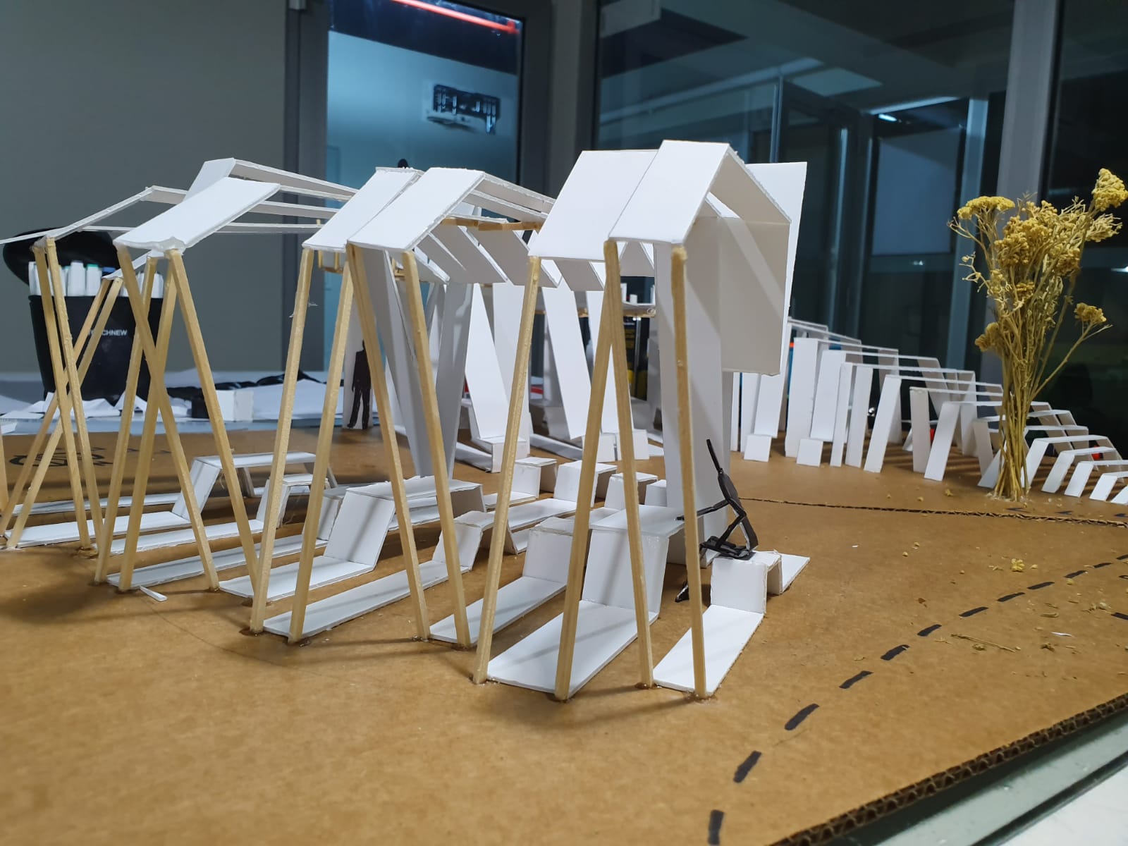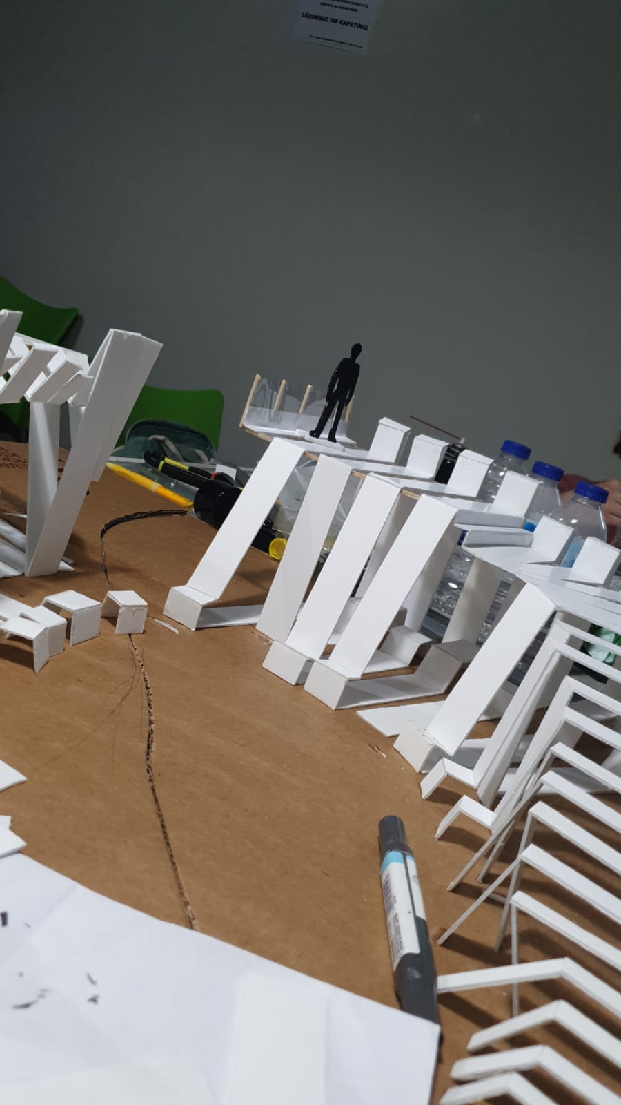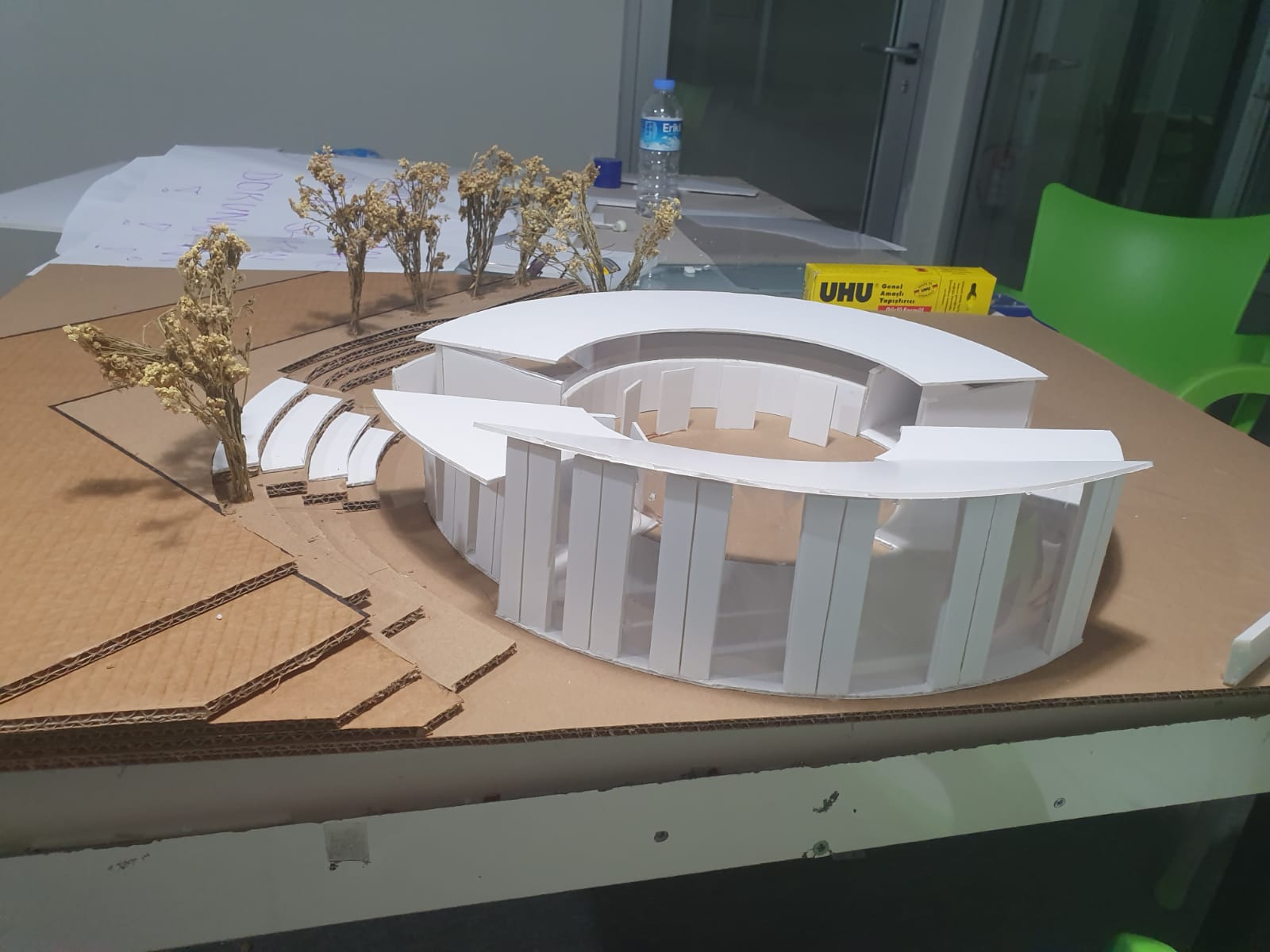 In relation to the site, we developed a design proposal of tensile structure individually. Our structure would cover at least half of the Gülbahçe Square, but would not exceed 2/3 of it. It would provide a shading environment to about 20 people who are standing underneath it for a specific reason that we decided and described. Our structure needed to represent the possibility and space characteristic of the nearby environment as well as represent its architectural durability and will be on a 1/50 scale.
