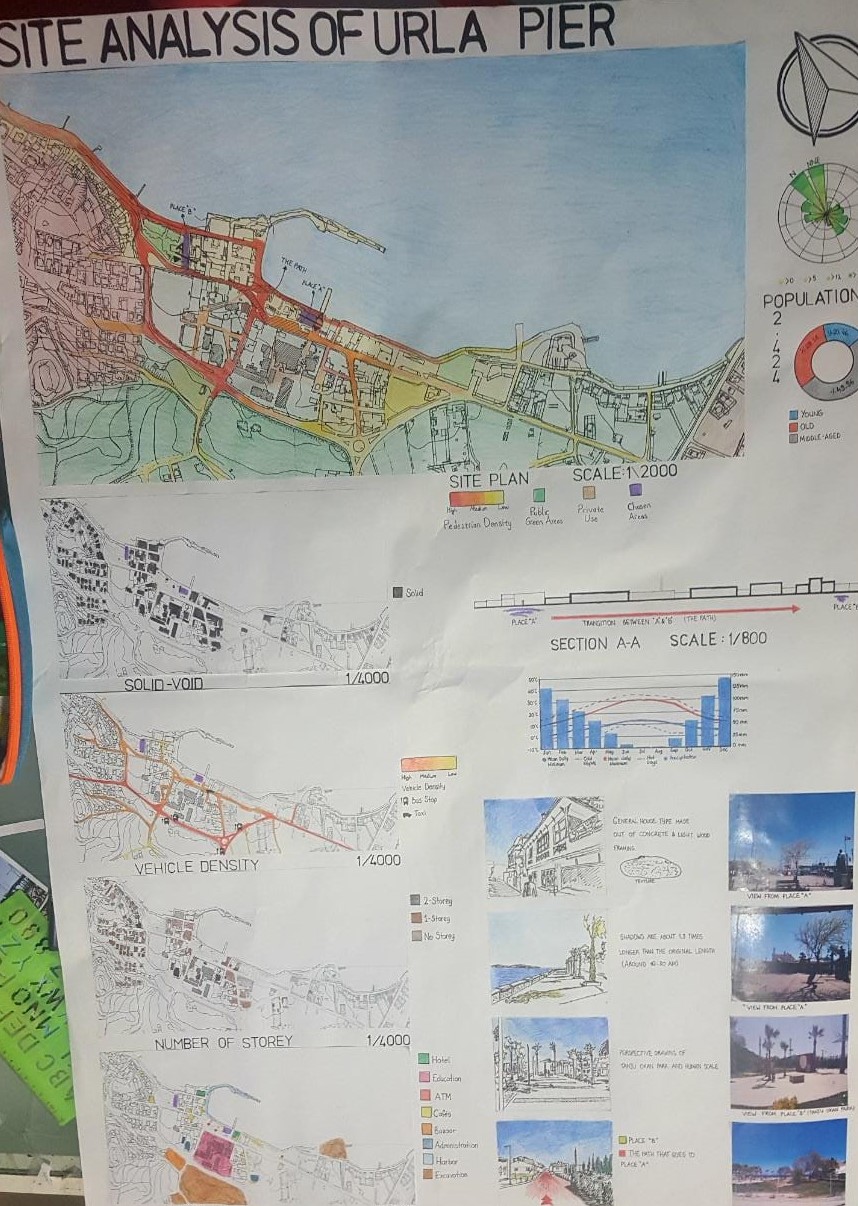 Since our design proposal would locate on a certain place, we also needed to experience and explore the site. This understanding helped us to design our design proposal suitable to its nearby environment. As a group of 2, this understanding was represented on a 35*50 cm poster, analyzing of the site through photos, sketches (facade and perspectives), diagrammatic illustration indicating circulation patterns, vista points etc. (1/500 to 1/200 scale base map would be enough to use for showing the diagrammatic representation.)