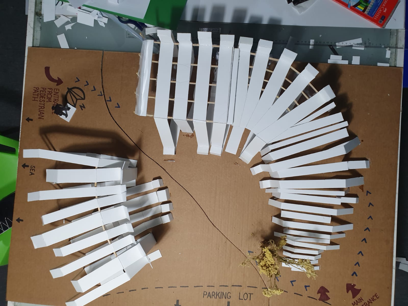 To create our own composition,we first needed to understand the principles of tensile structures through the analyses of existing structures and model making. After then, we started working on our composition with a proper application to the site.
