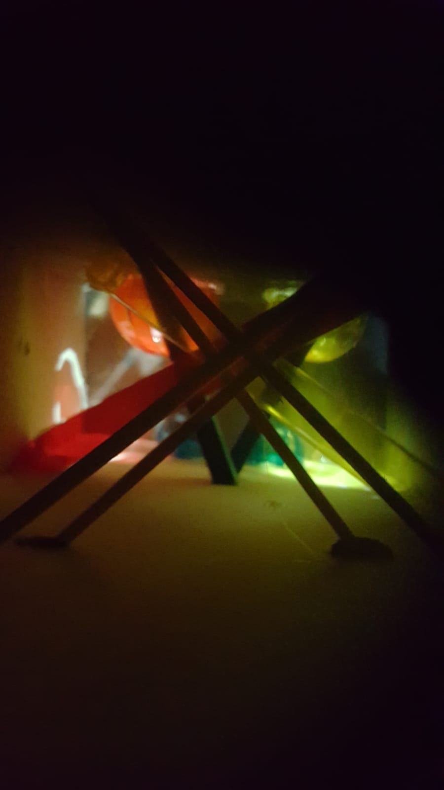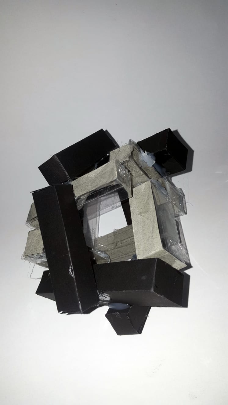 With fully opaque and semi-transparent elements we tried to control the light and create a 2D design reflection on a semi transparent surface.