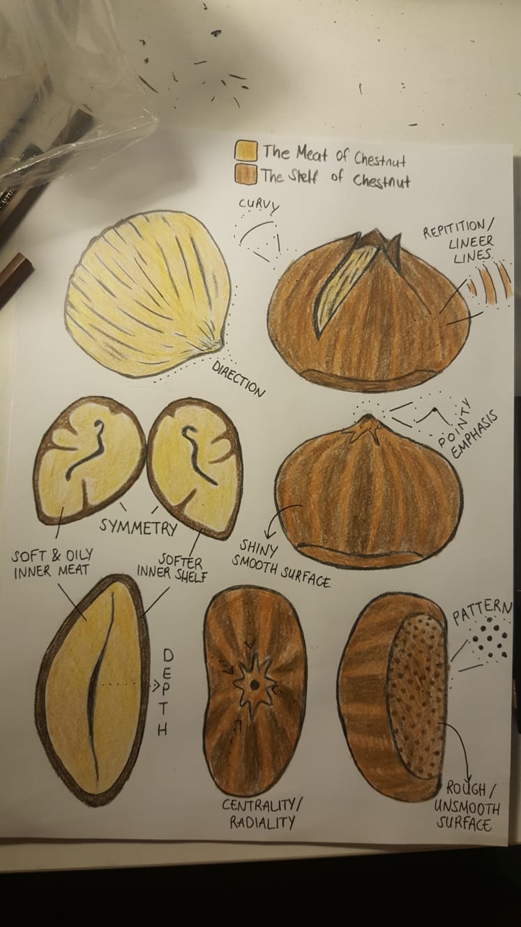 In this assignment, we learned how to analyse a vegetable/fruit geometricly, how to eliminate its features to the minimum where we can still tell the characteristics of the object, and the difference between design and realistic sketch.